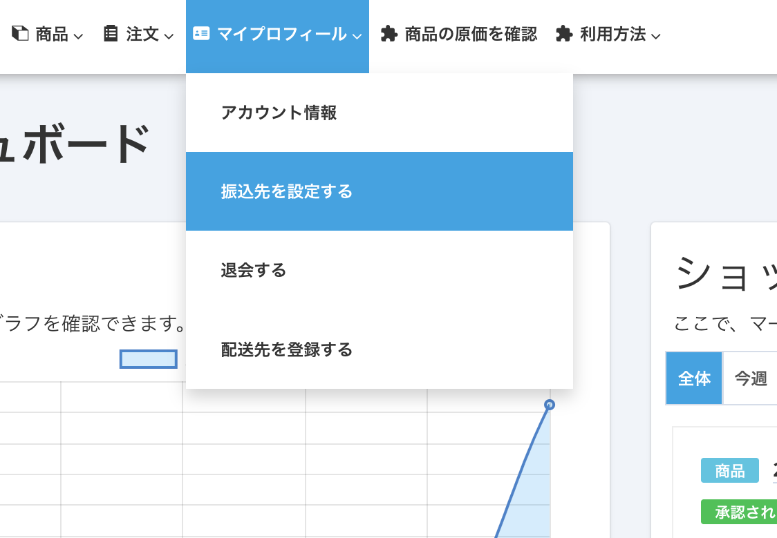 マイページ内のヘッダーメニュー「マイプロフィール」から「振込先を設定する」を選択し、口座情報のご登録をお願いいたします。